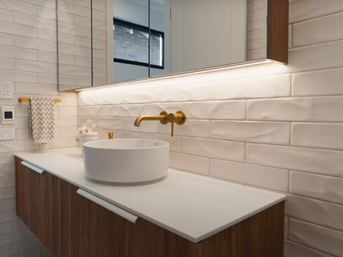 The ‘Lighting’ option is available on select mirrored cabinet models and delivers a plug and play integrated LED strip light on the underside of the cabinet.